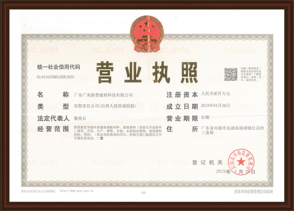 廣東廣美新型建材科技有限公司成立于2019年,坐落于廣東省河源市,廠區(qū)占地面積約80000平方米,是一家擁有年產(chǎn)量為100萬(wàn)平方米,集自主研發(fā)、生產(chǎn)、銷(xiāo)售和安裝為一體的輕質(zhì)新型墻板生產(chǎn)企業(yè)。本公司生產(chǎn)的輕質(zhì)隔墻板被廣泛應(yīng)用于酒店,商住樓 ,商場(chǎng),鋼結(jié)構(gòu)建筑、寫(xiě)字樓以及公建項(xiàng)目等大型建筑(基礎(chǔ)設(shè)施)領(lǐng)域。公司秉承“誠(chéng)信為立足之本,質(zhì)量為生存之源,服務(wù)為發(fā)展之道”的經(jīng)營(yíng)理念,為廣大客戶提供優(yōu)質(zhì)的產(chǎn)品與方案。 公司全體成員愿與您一起共筑改革時(shí)代的新篇章!